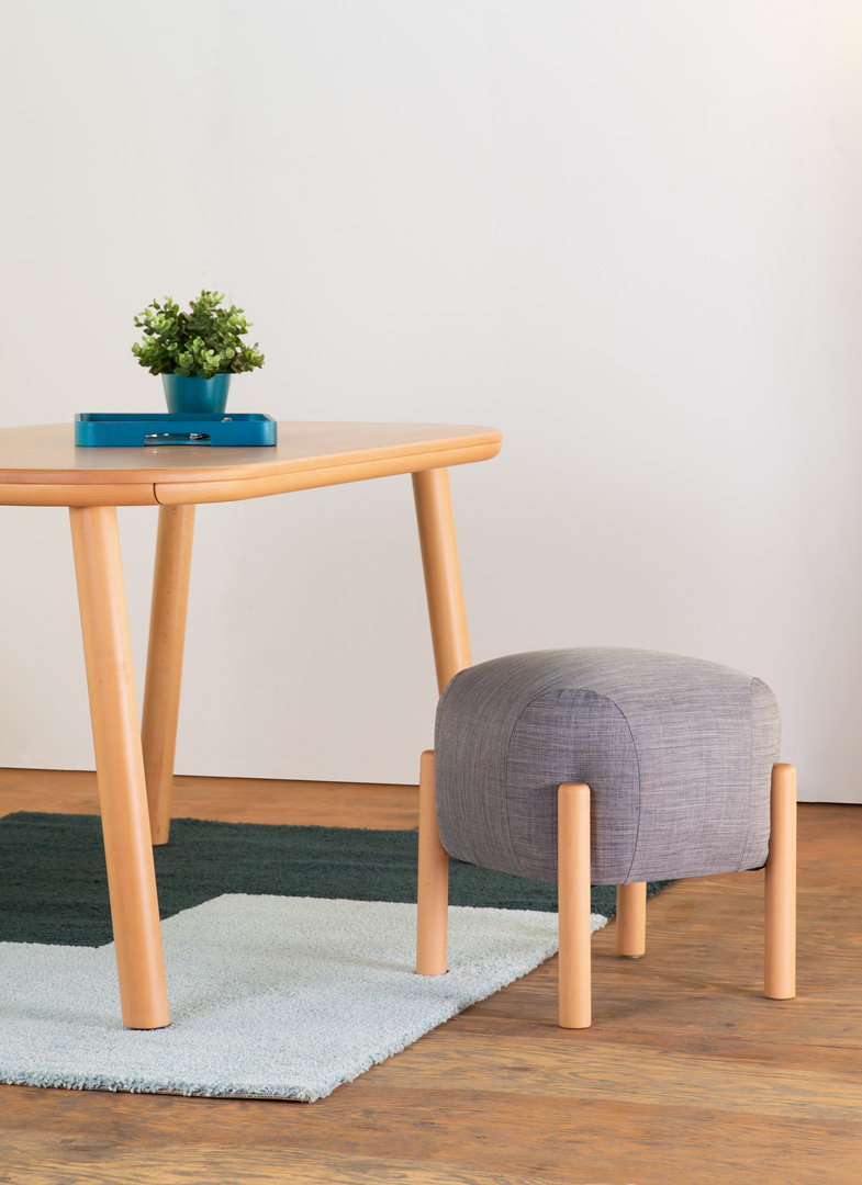 圓圓潤潤的實木,蓬蓬軟軟的墊裝,散發出圓圓的溫柔與邀約。